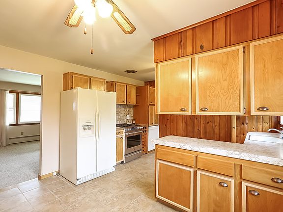 Turnkey and beautiful - Refinished hardwood floors, freshly painted, beautiful gas stove, energy efficient pellet stove in fireplace, updated easy clean tilt-out windows, newer roof, fabulous stonewalls, walkway and newer steps. You will love the gorgeous level and private backyard with large shed, garden area, fabulous patio, and greenhouse to start your seedlings - a perfect yard for year-round enjoyment! Dry basement provides room for expansion as well as enjoyment with garage with newer door and remote control. Quiet location convenient to commute tucked in a nice neighborhood making this house an affordable, home sweet home!