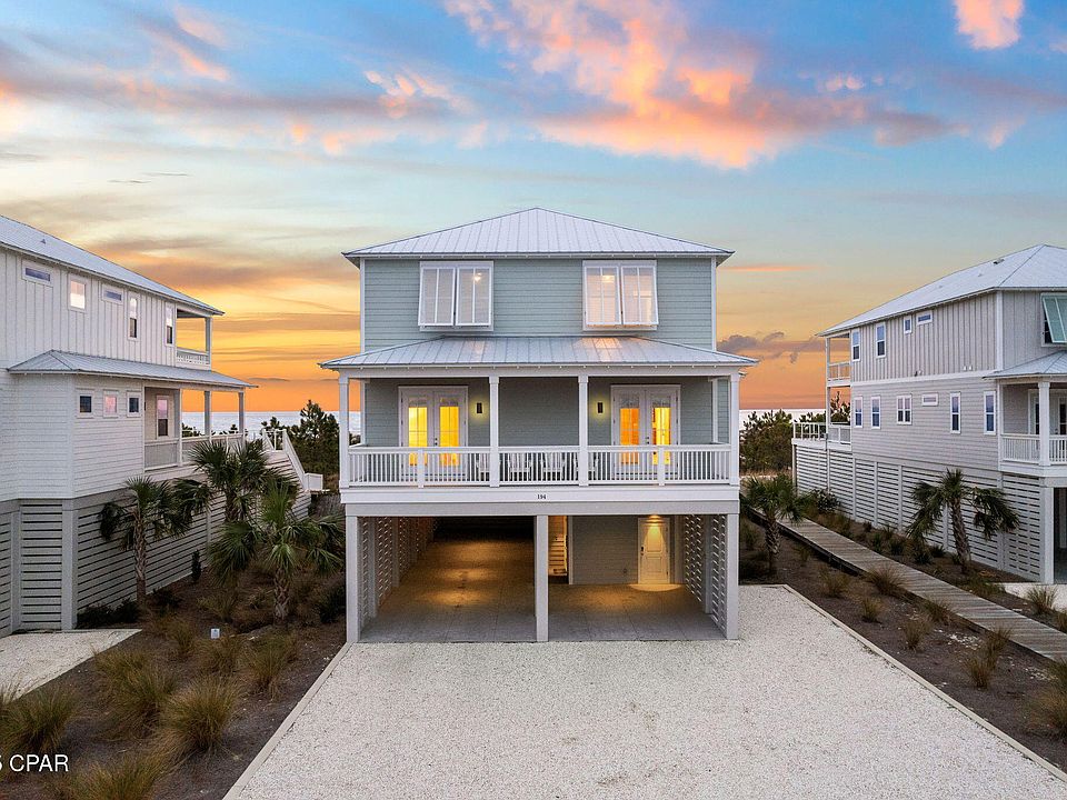 NEW 2023 CONSTRUCTION! ELEVATED POOL WITH OCEANFRONT VIEWS! With two large decks overlooking the Gulf, your own private pool, and the sugar sand beach and clear blue water just feet away, Coron Beach House is the perfect vacation spot in the Villa del Sol subdivision. This 3,300 square foot 5 bedroom 5 bath vacation home with an elevated pool and elevator was built in 2023 in a lovely private gated subdivision. Coron truly captures the essence of all things coastal. You will be greeted with a large, open concept living and kitchen space boasting spectacular Gulf views. Take a step through the back doors facing the ocean to find yourself in the peaceful, breezy surroundings with an amazing, unhindered view of the Gulf and your own private elevated swimming pool. Back inside, the dining and kitchen area has beautiful hardwood floors, modern amenities, and a kitchen featuring a large island, appliances, and quartz countertops. The comfortable, roomy living space is the ultimate gathering spot for entertaining and making memories with friends and family. The first floor has a 1 bay view master suite with a king bed and attached private bathroom along with a bay view master bedroom with king bed. On the second floor, there are two Oceanfront master suite bedrooms with king beds and attached bathrooms, and a charming bunk room with 3 bunks and a full bathroom. The most inviting aspect of the second floor is that two of the bedrooms have access to its large deck overlooking the Gulf, while the bunk room has views of the bay. Walk down the boardwalk from your coastal home and you'll find yourself on the miles and miles of sugar-white sand and pristine blue water of the Gulf of Mexico. Water and beach enthusiasts will appreciate the massive parking areas for beach gear. Whether you enjoy combing the beach for shells, snorkeling, kayaking, sunbathing, surfing waves, fishing, or taking a leisurely stroll along the shoreline, you'll spend hours of fun while soaking up the sun.