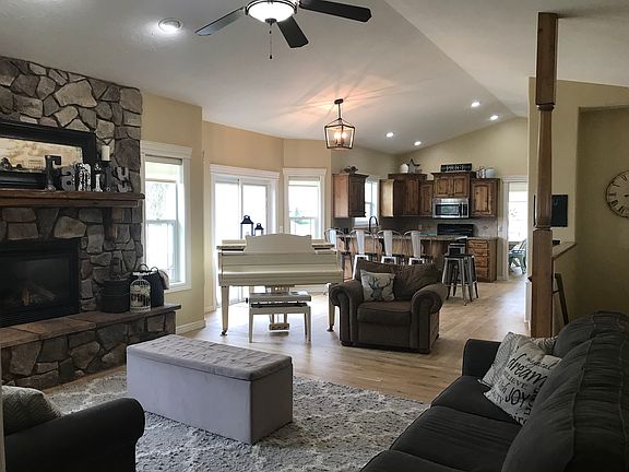 Gorgeous stone & stucco home situated on a 1.2 acre lot! This quiet Rigby subdivision offers plenty of space & privacy. The huge lot has an established lawn, flower beds, garden area, 3 car garage & large RV pad, with plenty of extra space to customize to your liking. Inside you will love the flowing and functional floor plan featuring 3244 sq. ft.! This home features hardwood flooring throughout the main living area, tile, and has new carpet in the upstairs. The kitchen includes knotty alder cabinets as well as granite counter tops. The living room has a floor to ceiling stone surround gas fireplace. Also on the main floor you will find a master suite with jetted tub and separate shower all with tile surround, dual sinks, tile floors and a walk in closet, 2 additional bedrooms, an office and a laundry/mud room with an additional half bath. The basement features a cozy family room, 2 additional bedrooms and a full bath, plus another 2 rooms to use as theater, game, craft or storage rooms!! The home has central air, gas forced air heat, central vac system, and is plumbed for water softener. Come see for yourself the space, quality and comfort this home offers!