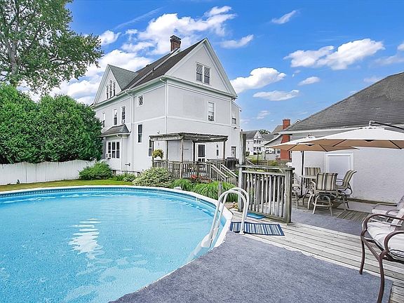 This 5-bedroom, 2-full bathroom home exudes timeless charm and character. Meticulously maintained, this home is a true gem! Step inside to discover exquisite detailing and built-ins that add a perfect touch of elegance. The spacious living areas offer a warm and inviting atmosphere with multiple entrances, a balcony, enclosed porch, fully applianced kitchen, partially finished basement, 5 bedrooms on 2nd floor, a heated space w/ 2 more bedrooms on the 3rd floor AND MORE! Outside, the beauty continues with a gorgeous backyard that features beautifully landscaped gardens, providing a serene and picturesque setting. Enjoy summer days by the pool, surrounded by lush greenery…perfect blend of historic charm and modern convenience, making it a must-tour. As per owner, furnace was replaced approx. 2013 and the water tank a couple years ago. Much of the furniture is negotiable too!! Don't miss your chance to own this GORGEOUS, well-kept treasure!