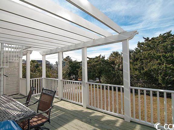 Second-row classic beach cottage in Litchfield Beach. Corner lot location boasts beach access directly across the road. Perfectly positioned for a backyard pool. Two floors with interior stairwell provides three bedrooms, two baths up and two bedrooms, one bath down on ground level. Boasting hardwood floors and whitewashed pine paneling, the top floor also has a full kitchen, screened front porch and deck overlooking the backyard. A laundry room is on the ground floor as well as two enclosed outdoor showers, attached storage room and patio. Each floor has a living area. Wonderful peek-a-boo ocean view from the rooftop deck. Home to be sold furnished. Primary residence or second home with excellent rental potential. Voluntary POA. This primarily residential community has a laid-back vibe with a lot to offer, including easy access to miles of pristine beach, creek access via a small public boat launch, Lowcountry scenic vistas as well as a few shops and restaurants within walkable distance. Myrtle Beach International Airport is 20 miles north. Historic Charleston SC is 70 miles south.