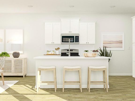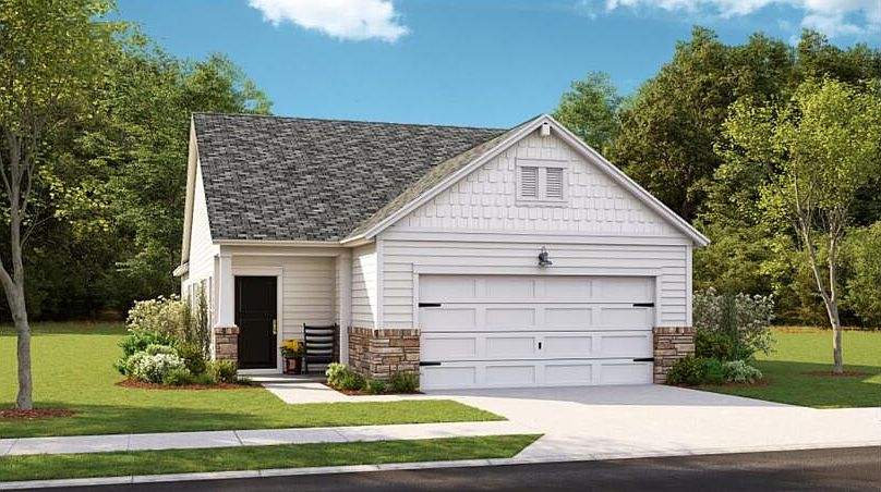 Welcome to Horizons, an exclusive 55+ gated active adult community situated in the highly desirable Carnes Crossroads masterplan. Residents enjoy low-maintenance living while having access to all the resort-style amenities within Carnes Crossroads. This very popular Carlyle home plan is situated on a stunning home site, backing up to a pond and beautiful trees, creating tons of privacy. Features are a 2 car garage, quartz countertops in the kitchen, lots of windows and natural light making this plan an immediate favorite! Spacious master suite with dual vanities, zero entry shower with frameless glass door. Very spacious guest bedrooms and full baths. No carpet and 9 foot ceilings.