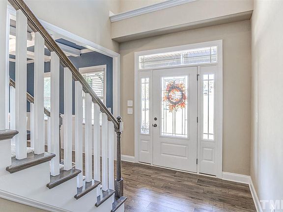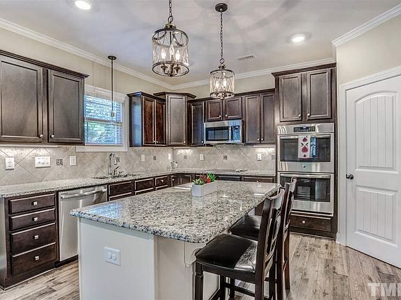 BETTER THAN BRAND NEW! This custom-built 5-bedroom, 3.5 bath home is located on a private cul-de-sac and backs to a wooded area that leads to the Neuse River. Gourmet kitchen boast double ovens, under cabinet lighting, center island & walk-in pantry w/an open view to the large living area. First floor master suite includes two WIC's, oversized tile walk-in shower, soaking tub, separate water closet & dual vanities. Screen porch overlooks a fully fenced backyard. Oversized garage & walk-in attic storage.