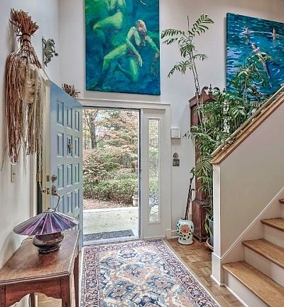 Intriguing Contemporary with 4 levels of exciting space, natural light, vaulted ceilings, artist studio, dynamite cook's kitchen, and even a pub room. The open floor plan and numerous skylights bring light into all rooms. The 2 fireplaces offer intimate seating in both the living and family rooms. The recently remodeled kitchen has cherry cabinetry, granite counters and exceptional storage, including floor to ceiling bookcases for a cookbook collection. Extras include a sunny plant room, loft sitting area, lower level offices, large recreation room with full bath and studio with separate entrance, a 2-car attached garage plus 2-space carport. A paved entrance with circular drive encloses a gazebo & koi pond with waterfalls. Lush landscaping creates a very private setting that is completely hidden from the road.
