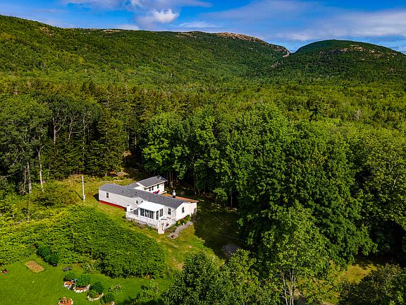 Great opportunity to own a lovingly cared for single wide home with many great additions including a sunroom, deck, and additional living space with its own bathroom, sleeping area and access. The .77 acre lot abuts Acadia National Park (south side of Cadillac) and has views of Gorham Mountain. Set back from the road this peaceful setting is the ideal place to call home for the summer. With some minor upgrades this home could be a 4 season home. Additional garden/storage shed and plenty of parking.