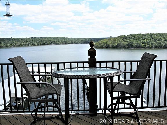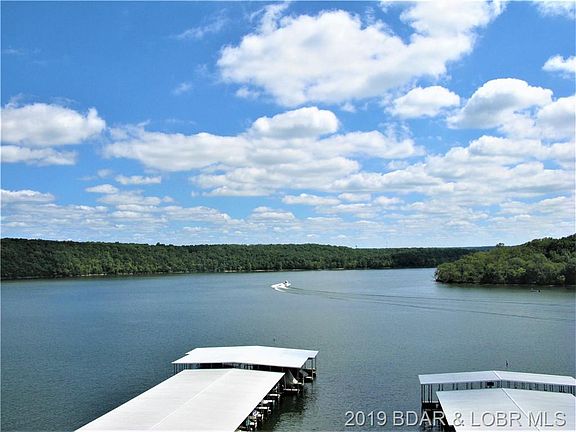 Breathtaking Panoramic View! The view from this top floor 3 BR, 4 BA condo with addl sleeping loft is one of the best views in the complex. Gaze out at the ever changing seasonal views of the state park as you sip your favorite beverage on your large-half open, half covered deck. Very unique condo layout makes for a larger kitchen and dining area than most units. The open layout is great for gathering family & friends on the sectional sofa while also cozying up to the fireplace on chilly fall nights. This is the unit that loves company! Bonus loft area is where the kids can sleep, hang out or turn it into an extra family room. All bedroom w/ own full bath! Vaulted ceilings-floor to ceiling glass-VIEW! 12x30 boat slip. Elevator in Bldg to left goes to waterfront-avoid the steps! 2008-30ft Rinker & hoist also avail. Complex on Grand Glaize Arm, nestled in the state park. Drive through the park instead of traffic as you make your way back to your new lake escape! Won't Last!