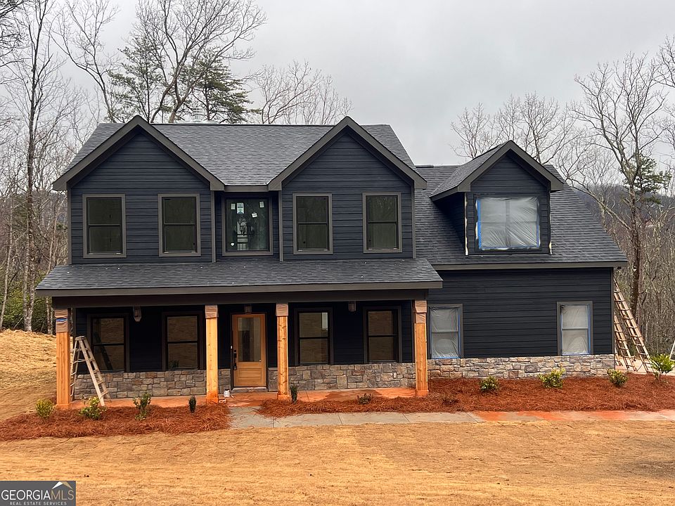 New Construction! Sitting on 2 acres with ridge top views & No HOA this oversized beauty features nearly 2500 sqft with highspeed fiberoptic internet. 4bd, 2.5ba, office, dining room, covered patio, & wood burning fireplace. Discover this brand-new traditional two-story home nestled on a private wooded lot with slight mountain views in the highly desirable town of Clarkesville, GA. Designed with modern comfort and timeless style, this new construction offers a functional floor plan, beautiful finishes, and a sought-after peaceful setting- all with no HOA restrictions. Step inside to an open and inviting main level featuring a bright living room with a modern fireplace, flowing effortlessly into a well-equipped kitchen complete with solid surface countertops, modern cabinetry, and a spacious dining area. A dedicated home office provides the perfect space for remote work or study. Upstairs, the thoughtful layout offers four bedrooms and two full bathrooms, including a comfortable primary suite. A convenient half bath is located on the main level for guests. Large windows throughout bring in natural light and highlight the serene views of the surrounding trees. Outdoor living shines with a welcoming front porch and a covered back patio ideal for relaxing, grilling, or watching wildlife in your private backyard. Located just minutes from downtown Clarkesville, shopping, restaurants, and North Georgia attractions, this home offers the perfect combination of privacy and convenience. Please use caution as this home is under construction. Do not enter the home without the listing agent before the sheetrock installation. Completion Expected February 2026, weather permitting. Key Features: New Construction * Traditional Two-Story Home * Clarkesville GA * Private Wooded Lot * No HOA * Fireplace * Home Office * Solid Surface Counters * 4 Bedrooms * 2.5 Bathrooms * Covered Back Patio * Front Porch * Move-In Ready * North Georgia Home For Sale