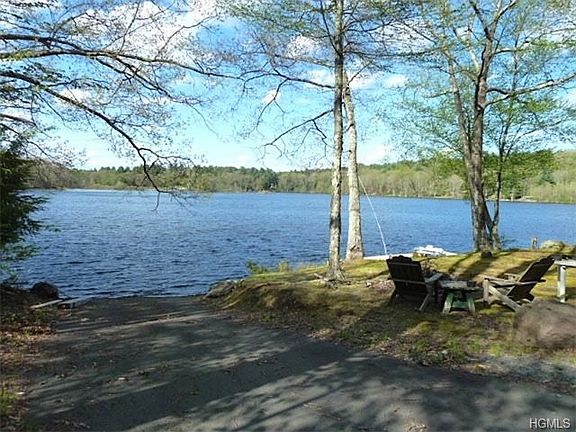 Swinging Bridge lakeview and just walk across the road to your private Tannery Woods lakefront beach area. This is a very special setting and situation, privately situated on 5.10 open and wooded acres. Beaver Mountain Log home, double covered decks overlooking the Lake, 3rd deck in back of house. Cathedral ceiling, big family kitchen, dining table looks out sliders to deck. Gas fireplace and wood stove as well as oil heat. Master BR suite, with loft reading room, master bath, and balcony. 2 rustic BRS on first floor plus additional bath. Great walk out basement, one room partly finished, lots of light, would make great family room. Garage. Lakefront access at a lake rights price! Bethel Woods Performing Arts Center and Kauneonga restaurant row close by.