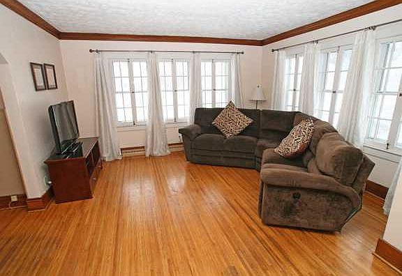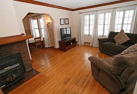 Bright and cheerful and loaded with old world charm. Large living room w/hardwood floors, beautiful crown molding, fireplace w/stove insert and wall to wall windows on two walls. Formal dining room w/built in hutch, hardwood floors, crown molding and second decorative fireplace. Master bedroom fit for a king with plenty of room for a king size bed and accessories. Convenient attached garage to breezeway/mud room. Double wide driveway. Roof and hot water tank done in 2013.Possible Lease to Own.