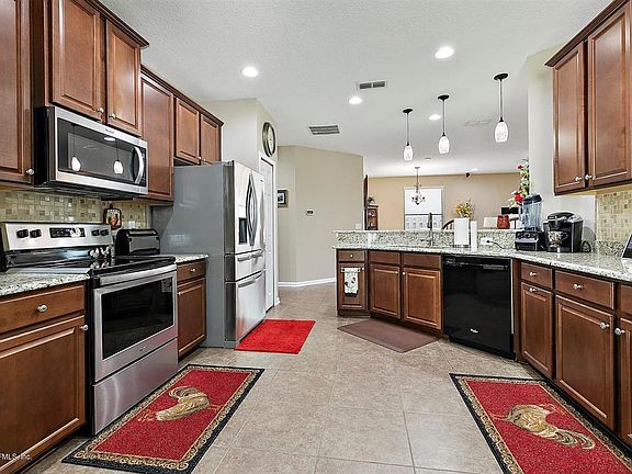 WELL MAINTAINED, MOVE-IN READY home with lots of upgrades. This 3 bedroom, 2 bath home features the popular open concept with split bedroom plan. Kitchen has granite counter tops, new stainless steel appliances, eat-in breakfast nook, and wooden shelves just installed in pantry closet. Large family room opens up to a screened in lanai with newly installed windows and a total fenced in backyard with pavered patio and separate grill nook. Spacious master with en-suite that includes jetted tub, large walk-in shower, separate water closet, and huge walk-in closet. Secondary bathroom also upgraded with granite counters and tiled bath/shower combo. Other upgrades include exterior Rhino Shield paint finish, ceiling fans with remotes, water purification system, cabinets installed in both laundry and garage, and remote control screen enclosure for garage. No CDD, community pool, and shopping/restaurant conveniences make this home a must see!