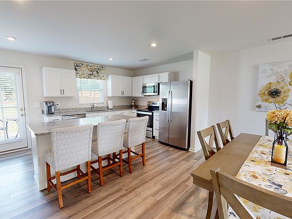 Like-new 2021 beautiful home in the desirable Queens Mill community. Walk to Pendleton Square for coffee, dining, shopping, beverages or ice cream from this gorgeous four bedroom home located near the front of the neighborhood. The modern, open floor plan features living, dining and kitchen all with LVP. The bright white kitchen has a pantry, granite counters and a large island with plenty of space for seating. Access to the back patio is just off the kitchen, super convenient for grilling. Upstairs is the primary bedroom with huge walk-in closet, and attached bath with double vanity. Separate laundry room, and three more bedrooms (one is used as an office) that share a spacious hall bath complete the upper level. Enjoy all Pendleton has to offer from this convenient community, complete with a playground.