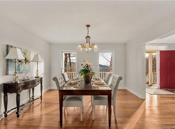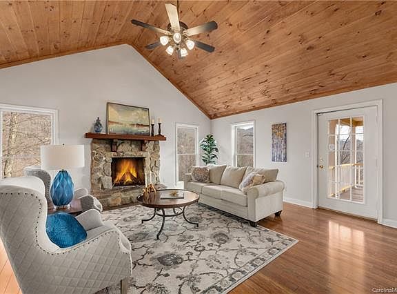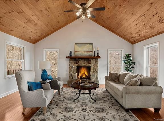 Newly remodeled Cape Cod style home sits on a knoll and has the VIEWS to show for it! You can relax on the large back deck watching and listening to a private waterfall cascading to a little pond below while grilling just steps from the kitchen door.. This home has much charm and character on the inside creating a cozy Great room with wood floors and wood burning stone fireplace.. Large floor to ceiling windows to let in the light.. Many kitchen upgrades... The three master on-suites allow for privacy and convenience for all... floor plan could accomodate an office... Lower Great space for game room and media area... The gated subdivision has year-round paved road access so this location combines the dream of living in the mountains without the difficulty of getting there. Garage on lower level.. large detached building for tool shed/storage.. Fabulous areas to relax and retreat from everyday life... Viewing deck above waterfall for sunrises. Competitively Priced at $141/Sq Foot