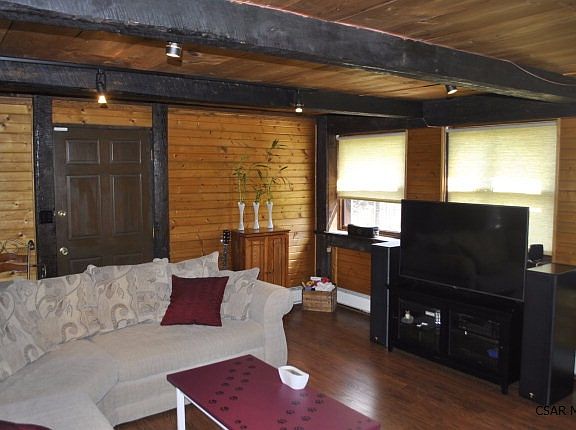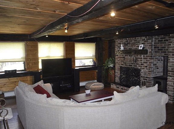 Country setting 4 bedroom 3 bath home.This home has a large family room and a lower level den with a brick fireplace with beamed ceilings.The kitchen is unbelievable.Measuring at 32 feet long with cathedral ceilings and center island,plenty of light comes in from the multiple large palladium windows.The french doors in the kitchen lead to a large deck.The rear of the home has a large deck as well with an in ground heated pool,new fenced in yard,9x13 heated greenhouse and a coal/wood outdoor furnace.Large 2 car integral garage and central air.