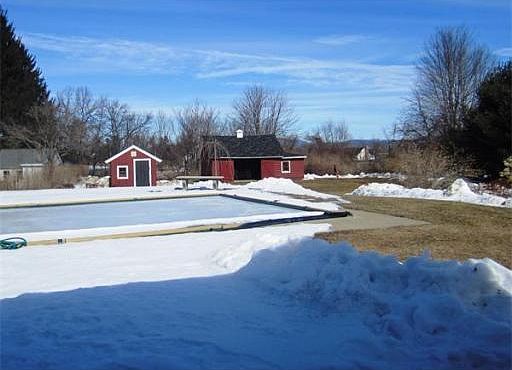 Move right in and enjoy the convenience of living here. This updated farmhouse features insulated windows, central air, hardwood floors, skylights and granite counters in the remodeled kitchen. Step down to the large rear living room which opens onto a covered porch overlooking the in-ground pool. A two car garage with second level storage plus a barn and you have all the space you need. New roofs on all buildings three years ago. New liner in pool and newer gas furnace
