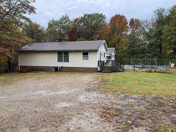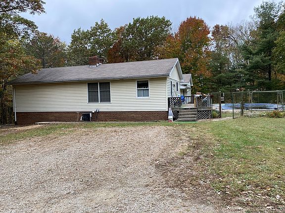 This home just needs you to bring it back to its glory! Solidly built, spacious home in the woods is a unique side to side split w/living, kitchen, lg laundry/eating area, dining & main ba & br on upper level that walks out to deck, pool & patio. 2 br, bath, & foyer are on the walk in level from the front. HUGE living room w/wood burning fireplace. Smaller kitchen is adjacent to the eating space/mudroom/laundry with dining room close by. Main bedroom is large at 18.8x17 w/walk in closeT and private bath. Basement has recently been waterproofed and re-supported by Ohio Basement Authority which has a lifetime warranty, it has two rooms, one w/a wood stove connected to fireplace, and another lg room w/a walkout door. 20x 40 inground pool is fenced and needs an est. $6-16,000 of work, pump works. Home needs updating to baths, flooring, light fixtures, & painting. Roof 8 yrs, A/C not working, furnace original but works, windows are original. Convention loan or cash offers only.