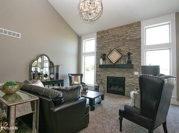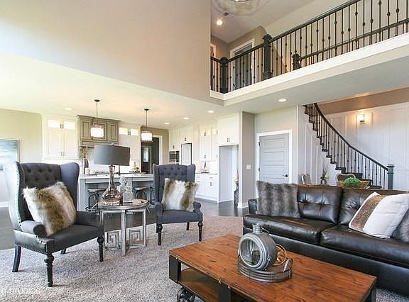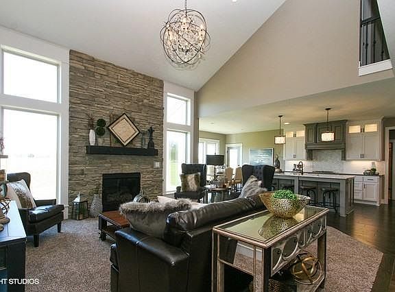 The Woodland Plan by JFE Construction. This beautiful 1 1/2 story features an open plan with a state of the art kitchen, a two story great room, master on main level and flex room. Majestic curved staircase up to bedrooms and loft which can also be finished as a bedroom.