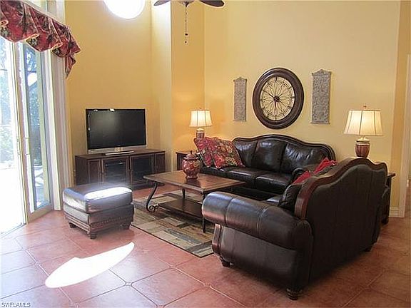 Renovated and furnished 2 bedrooms plus den, 2 bath single family home in the San Rafael neighborhood of the Vineyards. Large, open kitchen with stainless steel appliances, tile throughout, beautiful wood floors in the bedrooms and attractively landscaped. Very large, lovely and private travertine lanai for entertaining or just relaxing. Includes high-speed fiber optic internet, basic cable and 2 car garages. Strictly no pets and no smokers.
