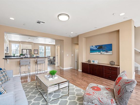 Open house Sat & Sun 1-4 pm. One of the largest floor plans in Livermore's highly desirable Montage community! This wine-country town home offers THREE bedroom suites with full bathrooms and a half bathroom on the main living area. Open concept living with tons of natural sunlight. Large kitchen with ample cabinet space, granite counter tops, and brand new stainless steel dishwasher and gas range. Built-in media cabinet in the living room w/ access to a cozy balcony. Laminate wood flooring, brand new carpet in bedrooms, control the A/C and Heat with the brand new NEST systems, and newer light fixtures. No front or back neighbors. Built-in cabinets for extra storage space in the two car garage. Community pool/spa, gym, club house, and park. Minutes to Los Positas College, easy access to HWY 580, ACE train, a quick drive to Dublin/Pleasanton BART, San Francisco Premium Outlets, Costco, golf courses and more.