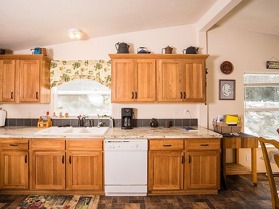 Beautiful 1.5 acre park like setting with this property, 4 lots with 4 sewer permits, 2 power hook ups, including a 28' X 70' pole barn to be used for covered parking or storage, double car garage/shop and nicely maintained manufactured home. The home offers 1300 square feet with open living area, vaulted ceiling, and newly remodeled kitchen. Single level home with three bedrooms, two baths, and large jacuzzi tub in master bedroom. Close to Boulder Creek State Park which offers boat ramp and large public beach and picnic area. This is property has a ton of potential, and space for your friends and family. Several great spots to park an RV