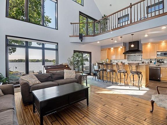 Built by Water Lovers for Water Lovers! This custom home built in 2007 sits on the Pond with spectacular water views. Every design detail about the home was thoughtful and meaningful. All you have to do is move-in and start enjoying the Summer! All elements are upgrades: Superior Wall foundation, radiant flooring throughout the home including basement offers warmth without drafts, Heat recovery and ventilation system provides fresh air into the home without sacrificing heat and can save energy costs. Central vacuum, water on demand, custom automatic blinds in living room, 30 foot ceilings showcasing the water view, 4 BR's and 3 Full baths, Loft area with multi function uses and the tower above the primary bedroom offers an area for star gazing or a private reading nook. The convenience of 2nd floor laundry. Of course, lets not forget what living here is all about-THE WATER! Private boat ramp and dock, outdoor multi level entertaining areas, outdoor speakers, 48 feet of water frontage and steel breakwall. DELAYED SHOWINGS until Thursday, June 10th with Delayed Negotiations June 14th at Noon. Offers must be submitted by Sunday at 9pm. Per seller, correct sqft should be 3032 sqft. 2021-09-13