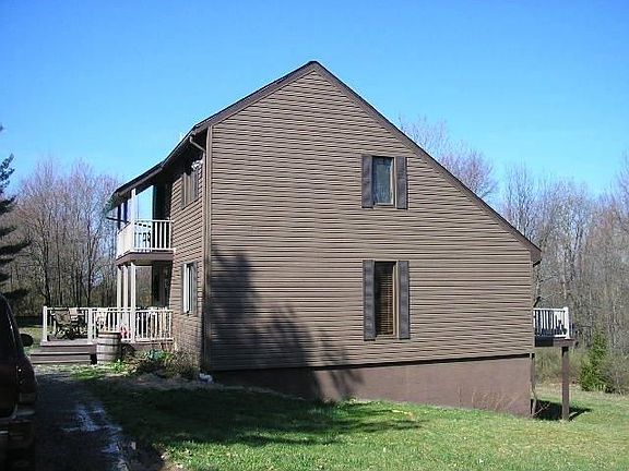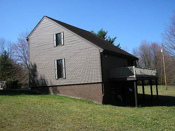 This comfortable secluded saltbox-style home features newer siding, decks, soffit, facia and more to make the home nearly maintenance-free. The interior offers laminate & carpet floors, all appliances with kitchen; and the walkout basement is nearly all finished. Balcony with 2 bedrooms & bath on the 2nd level. Abundant spring water & private septic. Nestled in the woods on a very private 4 acres, just 5 minutes from Clarion. Ideal year round or seasonal home. Shed is included, hot tub is not included.