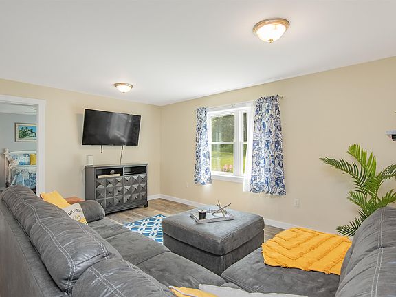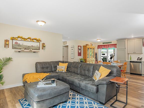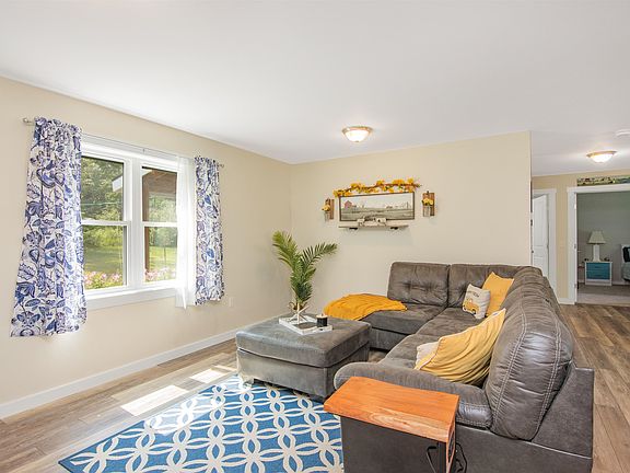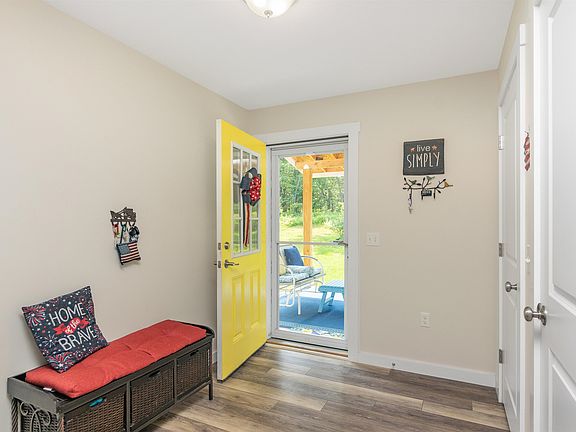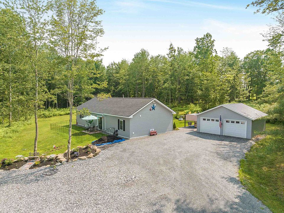Just bring your bags! Being sold fully-furnished, this Hyde Park home has been beautifully maintained and is perfect for anyone seeking private, single-floor living. From the expansive driveway, enter through the front door and into an entryway with closets. This leads into the large open-plan living, kitchen, and dining area. Stainless steel appliances and lots of cabinet space keep everything modern, and the sliding door to the back patio makes the room bright. There’s even room to add an island! To the right of the main living space you’ll find the primary suite, which has an enormous attached bath and walk in closet. This updated bath has double sinks and also houses the laundry. On the other side of the living space, two additional bedrooms that share a bath. Outside, you’ll discover that this home sits on 2.9 beautiful acres. The front of the home is full of garden plots and thoughtful landscaping. A small patio off the sliding door gives room for seating. From the front entry, there is a covered deck and two seating areas - one next to the garage and one off the front of the house. Surrounded by woods yet with a large plot mostly cleared, there’s so much space to enjoy the land! And with a detached two-car garage and a shed at the end of the driveway, you’ll never be short on storage. Situated on a quiet dead-end road yet only 10 minutes to Morrisville & Johnson and 20 minutes to Stowe, this home is the perfect spot to enjoy all that Northern VT has to offer!