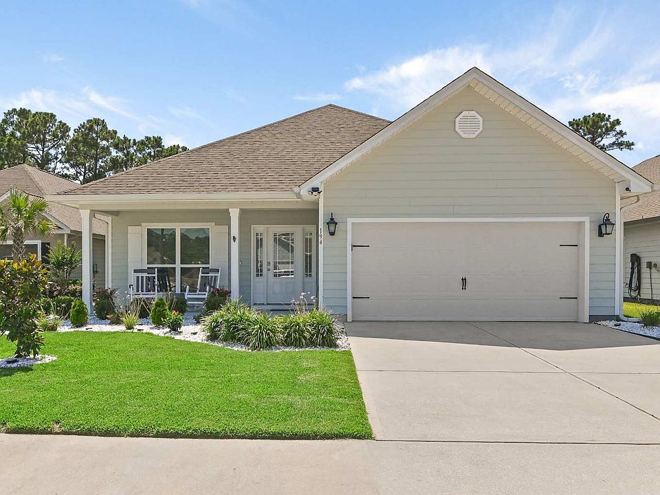 3BD/2BTH PLUS OFFICE. Model Perfect Beach Home! This highly upgraded like new open concept single story 3 bedroom + office, 2 bathroom home is an entertainer's delight and has lots of storage throughout. As you enter the home, you will find a spacious office that can be converted to an extra 4th bedroom or used as a playroom. The right wing contains the laundry room with extra storage, access to the attached 2 car garage, a full bath, and 2 additional bedrooms, both with walk-in closets. Down the hall is the open concept living area built for entertaining. There is an abundance of natural light as well as tons of LED lighting, a sleek 72-inch ceiling fan and fabulous views of the forest preserve with no other homes behind. The kitchen is a gourmet chef's delight and features stainless steel appliances, granite countertops, a spacious kitchen island with even more cabinetry, and soft closing cabinet doors. With expansive views of the trees and forest, the very private primary bedroom has an over-sized walk-in closet with lots of hanging space and shelving, as well as an en-suite bathroom with a double vanity, soaking tub, and a separate tiled shower. Outside, you will find the spacious screened in back patio/lanai/porch to enjoy the serene views. The welcoming front entry features an inviting front porch, rain gutters and new Zoysia grass sod with an automatic sprinkler system. The garage is an organizer's dream with an overhead garage storage rack, lots of LED lighting, and pull-down stairs to the spacious attic. This home has Smart Home Technology, upgraded Kohler Gleam comfort height soft-close elongated bowl toilets with smooth sides, and LED ceiling lights with modern rocker-style light switches. The location is very convenient to Ascension Sacred Heart Hospital in Miramar Beach; Grand Boulevard for dining, shopping and entertainment; The Village of Baytowne Wharf for world-class golf, water sports, dining, and entertainment; and Topsail Hill State Preserve, featuring 3.2 miles of uncrowded beach access and 2 large, naturally occurring coastal dune lakes. Bike to 30A, Blue Mountain Beach, Grayton Beach, WaterColor and Seaside. Snorkeling and diving enthusiasts will enjoy the first ever underwater permanent sculpture museum in North America. Live in Paradise on the Emerald Coast! Refrigerator, washer and dryer included. Breed restrictions for dogs apply.