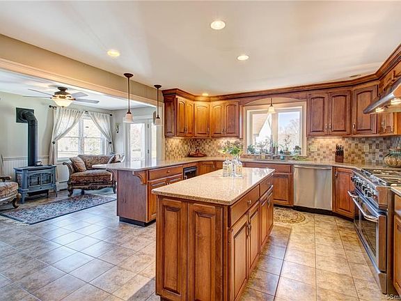 This beautiful updated farm-style home has a gorgeous kitchen with top-of-the-line commercial appliances, Liebherr refrigerator, Capital hood & range, Haier wine fridge, large island with granite counter-tops & lots of storage cabinets. A kitchen lovers dream! Cozy sitting area next to the kitchen with a gas fireplace adds to the sweetness of this home. A nice flow with an open layout, custom built-ins, wood beams, hickory hardwood floors & so much character throughout. The master-bedroom suite has a private full bathroom, walk-in closet & a fireplace. This home also has a high efficient Buderus heating system. Large leveled lot, pool & an oversized 2-car garage on 1.75 acres. Don't miss out on this lovely home in move-in condition.