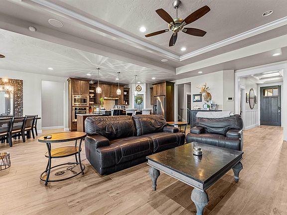 Located in the premiere Paramount community in NW Meridian, this stunning Brighton built home offers 4 bedrooms, 2.5 baths and over 3200 sq feet. Walking into the home you will be wowed by the office space to your immediate left with beautiful glass french doors, a large living space, beautiful kitchen with granite counter tops and plenty of natural light. On one side of the house, two bedrooms share a jack and jill bathroom, perfect for kids or guests. On the other, the Master bedroom has a large walk-in closet and spacious master bathroom. The upstairs of the home is a bonus room, featuring a walk-in closet and large storage area. Making your way out of the house, you will find a beautifully kept backyard with a covered patio and surrounding fence. In the front of the house is an attached 3 car garage perfect for storage, or a shop space. Don’t miss out on this amazing home in a beautiful community in NW Meridian.