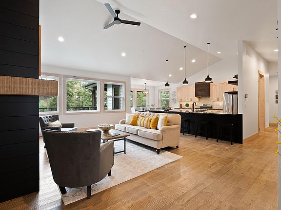 GREAT PRICE IMPROVEMENT!!! Nestled in the trees sits this stunning new home in the desirable Buffalo Mountain community. Featuring Montana wood floors, locally made custom Alder cabinetry, granite countertops and floor-to-ceiling gas fireplace. Enjoy full living on the main level including the master bedroom with en suite, 2 bedrooms, a bathroom and laundry room. Live in comfort with a heated tile floor in the master bath, free-standing soaker tub and gorgeous tile walk-in shower.The daylight basement gives you a second living area, 2 bedrooms, full bathroom, and a HUGE storage room. Plumbing is there for you to add a wet bar if desired and make a great entertaining space! Over-sized exterior doors let in added light to bring that big Montana sky right inside your home. Relax with coffee or entertain friends while enjoying peek-a-boo views from either the top or lower deck.