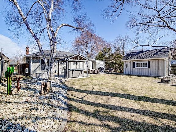 LIVE, WORK & PLAY – BACKING ONTO A GREENBELT IN HESPELER. Tucked away on a quiet, mature street in Hespeler, this charming bungalow is more than just a house – it’s a home that’s been loved, updated, and thoughtfully maintained over the years. Backing onto peaceful greenspace and a nearby park, it offers the perfect blend of privacy and nature. Inside, you’ll find an open-concept layout with over 1,670 sqft of finished living space, including 2 spacious bedrooms on the main floor (with the option to convert back to 3). The heart of the home is the beautifully updated kitchen – complete with a large island, breakfast bar, pot drawers, soft-close cabinetry, pot lights, and a handy lazy susan – perfect for morning coffees or gathering with friends. Downstairs, the fully finished basement offers a cozy rec room, a full 3pc bathroom (2015), and a versatile den currently used as a bedroom – ideal for guests, or a home office. The large utility room doubles as a workshop, complete with a workbench and laundry area. Step outside to your private backyard oasis, where entertaining and relaxing come easy. A concrete patio (2016), hot tub (negotiable), and wired gazebo set the stage for memorable summer nights. The 10x20 shed (2016), wired and prepped for a future golf simulator, adds incredible bonus space for hobbyists or sports lovers. Additional updates include: Patio sliding doors (2018), roof (2018), furnace & AC (2022), a double-wide paved driveway (2016), front yard irrigation, soffit lighting, updated kitchen and bathroom windows (2013). With excellent access to schools, amenities, and the 401 just minutes away, this home checks every box – and then some. Come imagine your next chapter here.