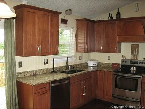 Cul-de-sac location, great mountain views, 3 bedrooms and walk-out partial basement could be a 4th bedroom. Updated kitchen w/granite, stainless appliances. Tri-level with living room, kitchen, dining area on main level, family room w/ wood burning fireplace in lower level w/ half bath. Vaulted ceilings, ceiling fans, skylights, AC, blinds on all windows. Newer vinyl windows, slate tile floor at garage entry and 2nd bath. Fenced rear yard, 2 decks off back of house. Flat driveway with plenty of extra room to park.