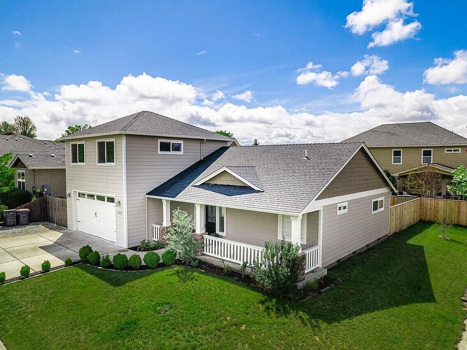 $5k towards closing costs offered with purchase! This modern Home on a cul-de-sac street has a rural feeling and RV Parking! With its corner lot and farmland surrounds, this house feels like it is out of the city, while still being close to peaceful neighborhoods and parks. A covered front porch welcomes you into this 3 bedroom, 2.5 bath house which boasts hardwood floors, high ceilings, and a main level primary suite. The primary suite includes a jetted tub, separate shower, and a walk-in closet. The open floorplan is great for entertaining. The modernized kitchen includes stainless appliances, rich Espresso colored cabinets, granite countertops and tile floors. The back yard is great for all seasons with both a covered patio and an uncovered patio made for evenings around a firepit along with great views. Fully fenced.
