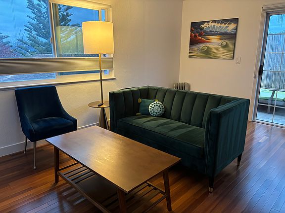Freshly renovated 2 bed, 1 bath furnished apartment in Los Osos with Bay views! Move in ready for a February 15th start date. Downstairs bedroom has a twin bed and small walk-in closet. Upstairs has a queen bed, with fireplace and deck. Newly renovated kitchen. No ability to rent unfurnished. 360 walkthrough is not current. It cannot be removed but please ignore as it is not accurate or relevant to the current situation. This apartment is the back half of a house that has been split into a duplex. Owner Pays all Utilties