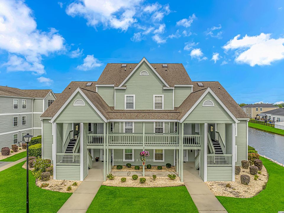Welcome home to Hampton Green and this two bedroom, two full bath condo uniquely located overlooking a canal water feature. Conveniently located close to Surfside Beach. Private Walk up stairs which opens up to the spacious main living area with vaulted ceilings and open to the dining area and kitchen. First floor big bedroom with its private hall bath access, plenty of closet space.The second bedroom above accessed with your spiral staircase leads you to the owners suite that is spacious and has it's own ensuite. The sky lights have been professionally tinted, yet the windows and sky lights provide great natural light.The main living area and the owners' bedroom offer great views of the pool and canal. Appliances and new Washer/Dryer stack unit convey. This community's reasonable HOA fee's includes a pool, tennis courts, trash pickup, basic cable, internet, and common area maintenance. Just a golf cart ride away from the beach, new Surfside Beach pier, bars, restaurants, and entertainment. It is also a short drive from the Murrells Inlet Marshwalk and all the attractions in Myrtle Beach. Call your agent and schedule to see this one soon!