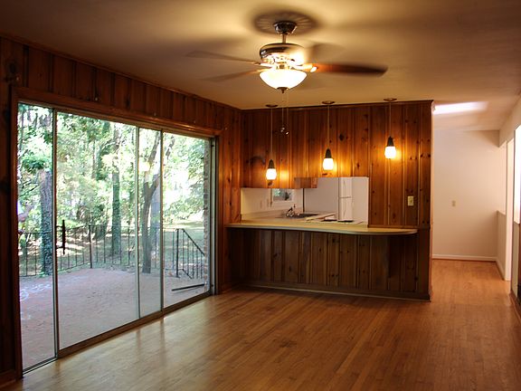 Full brick ranch is 1728 sq. ft. that sits on almost an acre lot. Plenty of privacy and a large shaded yard which has very little maintenance. Short walking distance to downtown Kennesaw. Convenient, easy access to Kennesaw State University, Town Center Mall, I-75, I-575 and Cobb Parkway. - Full walkout, daylight basement (1728 sq. ft.) with garage parking if desired. - Living/Dining Room with built-in cabinets/planters - Family Room with original pine paneling and built-in desk/bookcase and breakfast bar - 3 Bedrooms, 2 Baths – both original tile - Original oak hardwood flooring throughout entire house - Brick and flagstone patio, carport overlooking back yard - Whole-house attic fan, new Energy Star ceiling fans in bedrooms and family room - Kitchen, all electric with built-in oven/microwave, dishwasher, refrigerator with icemaker hookup
