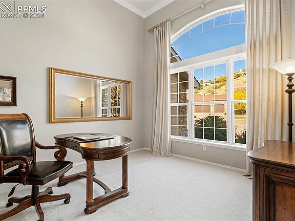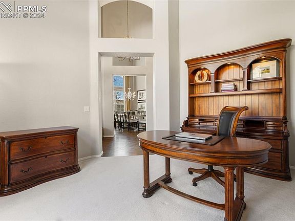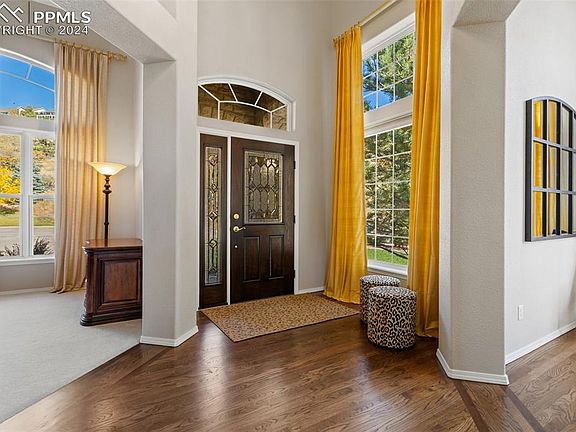Step inside this stunning home poised at the top of a quiet cul-de-sac with panoramic views. This home is move-in ready! The open floor plan with extensive hardwood flooring draws you into the foyer. With soaring ceilings and foothill views, the living room is a flexible space that can also be used as a music room or an office. The beautifully renovated kitchen boasts quartzite countertops, gas range, double ovens, sprawling island, dining nook & pantry. The kitchen adjoins the dining room and overlooks the family room making a perfect flow for entertaining. The family room is bathed in natural light and features a wall of windows framing the mesmerizing views and a cozy two-sided gas fireplace. The expanded composite deck provides a retractable awning and overlooks the foothills. Here, you can watch the sun set over the mountains. The home office offers the ideal workspace. Unwind in the primary retreat featuring an adjoining 5pc bathroom, dual closets, and yes, amazing mountain views. The upper level provides two secondary bedrooms and a Jack-and-Jill bathroom. The walk-out basement opens to a family room with a home theater and wetbar. Ideal for hosting guests, the basement has a bedroom and full bathroom with heated tile flooring. There are two storage rooms that provide an abundance of space to organize your belongings. Walk out to the private patio overlooking the back yard with mature trees and landscaping. Situated in the foothills of Northwest Colorado Springs, you will enjoy the splendors of mountain living and wildlife. Conveniently located to miles of hiking & biking trails in Ute Valley Park, Blodgett Open Space and Garden of the Gods, yet you are minutes from I-25 with easy access to downtown Co Springs, USAFA, District 20 schools, shopping and dining. This must-see home provides: extensive hardwood flooring; updated lighting; new windows, new roof, new exterior trim paint. Move right in and enjoy the amazing amenities, location and views of this home.