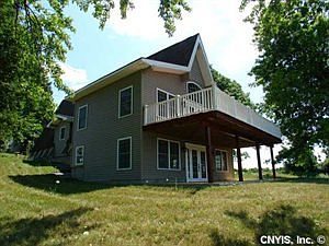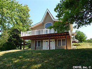 Charming chalet, spectacular setting w/glorious lake & country views! Original A-frame was gutted with a 1,200 square foot addtion in 2008-new kitchen, baths, windows, flooring, siding. Sellers have over $130,000 in renovations & addition since 2008. 20'X30' Greatroom w/cathedral ceiling, gas fireplace, and french doors to 12' X 30' deck is the perfect place to entertain. 1st floor master suite has a 6' foot jacuzzi tub. Lower level includes an additioanal 3 rooms that could be used many ways. This is a perfect vacation or primary home in the award winning Skaneateles school district.