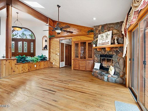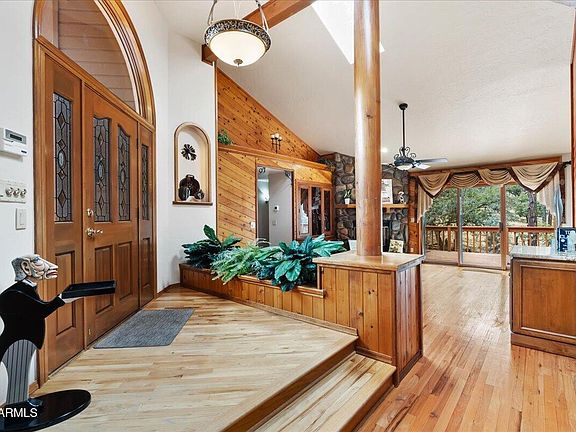 Beautiful home that backs up to the Prescott National Forest and close to hiking trails, but just a short drive to downtown Prescott and Whiskey Row. Situated on a private lot in Hidden Valley Ranch, this home has tons of privacy yet still offering a neighborhood feel. Pavered driveway with tons of parking, 3 car garage and lots of exterior decks for you to enjoy nature. Inside the home be wowed by the wonderful wood floors, wood casement windows looking into the trees, beamed ceilings, two river rock fireplaces and a split floor plan for ultimate privacy. Upper level features an updated kitchen with granite countertops and sized panty, dining nook, 2 built-in hutches, a formal dining, living room, guest suite with a full bath and absolutely lovely master bedroom with exterior deck access, a large walk-in closet, walk-in shower and a soaking tub. Lower level can be a fun play area large enough for parties or additional living area. Enjoy the kitchenette, additional bedroom, full bath, family room with wood stove, tons of storage, cedar closet. The lower level does have a separate entrance from the exterior of the home and an interior door to separate the top floor from the bottom if you desire a two family home.