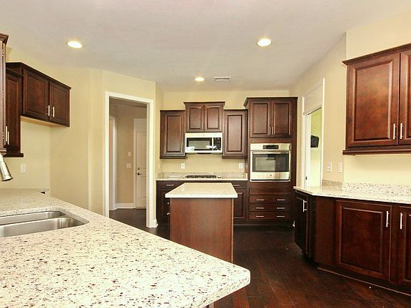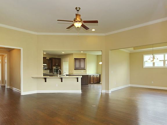 Large Kitchen offers an island plus a peninsula with breakfast bar, granite countertops and tons of storage space in the Aristokraft Saybrooke Umber cabinetry. Dining Room provides additonal space to entertain. Main living space has a gas fireplace and Nuvelle wood plank flooring throughout. Owner's Suite features coffered ceilings, french doors leading to the Owner's Bath, dual sink marble vanity, glass enclosed shower and huge walk-in closet.