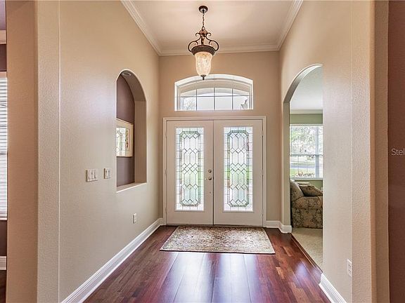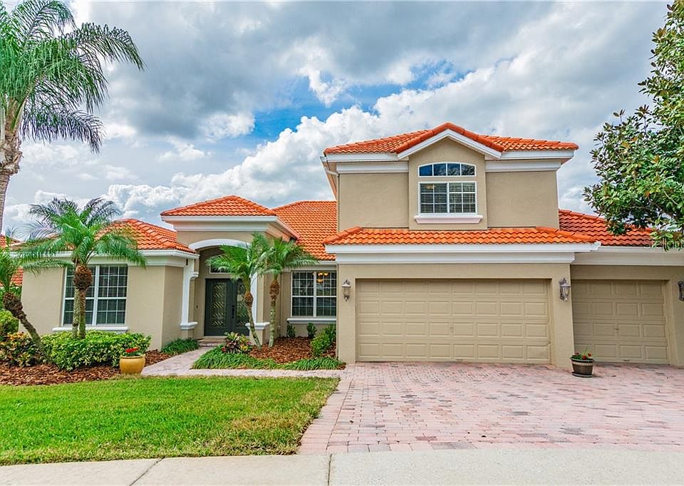 PARADISE AWAITS YOU - Relish in LAKEFRONT SUNSET VIEWS from the screen enclosed pool and covered lanai of this 4 BEDROOM + BONUS ROOM home in the quiet GATED COMMUNITY of Hidden Cove in Longwood. A paver driveway, fresh landscaping, and double entry door with glass inserts beckons you inside and expect to be impressed by the soaring ceilings, arched doorways, crown molding, tray ceilings, and engineered hardwood flooring. The foyer first leads to the formal living room on the left, which could potentially be enclosed with French doors for a spacious home office, then to the formal dining room on the right. Directly ahead is the family room with views of the lanai, pool, and Lake Myrtle from the French doors. Sharing the same views, the breakfast nook and kitchen have the OPEN CONCEPT layout everyone so desires. The home chef will love this kitchen because of its size, a center island, desk area, and a breakfast bar. As a SPLIT BEDROOM FLOOR PLAN, the master bedroom is a private retreat and double doors provide a grand entry into it plus it has access to the lanai. The master bath boasts a walk-in closet, step-in shower, soaking bathtub, and two separate vanities with UNDER CABINET FLOOR LIGHTING. On the other side of the house are the 3 other bedrooms, 2 full bathrooms, and a staircase to the BONUS ROOM with extra storage. Plus there's an inside laundry and attached 3-car garage. Conveniently located near I-4 and 417, there's plenty of nearby shopping and restaurants. CHECK OUT THE 3D VIRTUAL TOUR