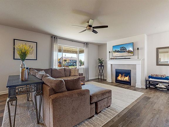 Beautiful light filled home with 5 bedrooms and 4 bathrooms, only 2 years old. Fabulous location backing to open space and sitting on a quiet cul de sac street. From the front porch, enter into the vaulted entryway, proceed to the open great room with fireplace, fabulous kitchen with huge quartz island, upgraded appliances and dining room surrounded by windows. Upgraded finishes throughout this home, including tall doors and windows! A study is on the main floor and 1/2 bath. Upstairs you will find a large loft area, the laundry room, 3 bedrooms, 3/4 bath and the master suite, with a lovely bath and large walk in closet. The basement is finished with a family room, bedroom and bath and 9 ft. ceilings. This home is extremely energy efficient with 2 furnaces and 2 ac units and a HERS rating of 59! Wow! The large covered back patio provides a view of the mountains, the back yard and open space. Enjoy entertaining your friends and family both inside and out! This quiet friendly neighborhood has very low HOA dues, a playground and lots of hiking, biking trails. Convenient location close to shopping, restaurants, The Orchard and the outlet malls. Your commute will be easy with I-25 and E-470 close by. Don't let this wonderful home pass you by!