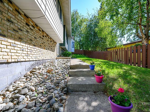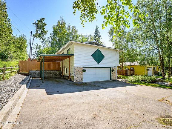More than meets the eye when you step into this well cared for home! Enjoy the extra love & attention to detail. Peaceful setting located on a dead end street next door to the neighborhood trail. Features include a 2 car garage plus RV carport and additional parking pad, spacious back yard with privacy fence, complete with a covered rear deck & storage shed. Interior boasts fantastic open conceptfloor plan with a spacious living room, separate lower level family room plumbed for a wet bar, 4 nicely sized bedrooms (with 2 master suites) plus fresh paint throughout, new vinyl tile flooring down, & newer carpet up, newer stainless appliances complete with a built in beverage cooler, updated light fixtures, washer & dryer stays, brand new water heater, extra long driveway for all your parking needs, plus so much more! A short distance to shopping, restaurants, business centers, JBER, UMED district, Midtown and public transportation. Truly a MUST SEE!