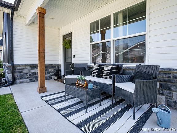 This LIKE-NEW home has been lovingly cared for and it is MOVE-IN ready! The OPEN-LIVING floor plan is welcoming and spacious with a vaulted ceiling. You'll find easy maintenance LUXURY VINYL PLANK flooring throughout the home. The main bedroom has a walk-in closet and ensuite bath. The two additional bedrooms are located at the front of the home, along with the second full bath. There's a SEPARATE LAUNDRY ROOM with utility closet. ALL stainless kitchen appliances stay. The large COVERED FRONT PORCH overlooks the NEIGHBORHOOD'S COMMON GREEN SPACE, and is a great place for relaxing with your morning cup of coffee and enjoying the evening breezes. HOPKINS COTTAGES was one of Jeffersonville's first "pocket-neighborhoods" with only 13 homes - it is tucked away in a residential area that is CONVENIENTLY LOCATED, with easy access to downtown Jeffersonville, shopping and restaurants. Only blocks away from Perrin Park and the Jeffersonville Aquatic Center. You can easily access Hwy 62, as well as both the Lincoln and Lewis and Clark Bridges for getting to and from Louisville. Fisher Lane is a ONE-WAY street. Each home has a rear-entrance 2-CAR GARAGE. This home has been PROFESSIONALLY LANDSCAPED, sits on a CORNER LOT, has a back PATIO off the driveway. Note: The electric fireplace unit does not remain. Don't miss your opportunity to call in this BEAUTIFUL, energy efficient, LOW-MAINTENANCE home YOURS! CALL AND SCHEDULE A SHOWING TODAY!