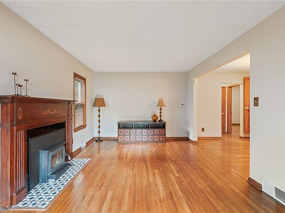 Welcome to this charming home located in the heart of West Akron! As you step into the living room, you'll be greeted by a cozy mantled fireplace, flanked by windows, and beautiful hardwood floors that extend into the gracious dining room.