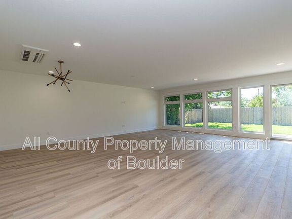 APPLICATION PENDING! Welcome home to this "down to the studs" remodeled 3 bd 2 ba ranch style property located in desirable North Central Boulder.Spacious, open floor plan was created with kitchen flowing into living dining area and a wall of new windows and a sliding door to the south which allow in tons of natural light. There are 2 new solar tubes that bring natural light as well. Chef's kitchen is perfect for entertaining with a double oven, induction cooktop and large island, the kitchen sink has reverse osmosis. Rare 2 car garage for this neighborhood. Quick walk or bike ride to Community Gardens, Salberg Park, Columbine Park,Columbine Elementary and the Goose Creek bike path. Close to restaurants, grocery stores, retail and coffee shops. Convenient to downtown Boulder, open space trails and North Boulder Rec Center. Near bus stops. List of new improvements to the house includes: walls removed to open the kitchen/living dining area, new electrical and plumbing, new kitchen with quartz countertops, cabinets w/ soft close drawers and new appliances. updated bathrooms, New mudroom with large pantry and new full size washer dryer. New doors, hardware, fixtures, lighting, insulation, & drywall throughout. 2 solar tubes. Interior/exterior paint, new flooring throughout. New windows in Living room, Kitchen, and mud room. And a new sliding door Heated and cooled from a new HVAC system w/ 5 individual heat pump cassettes in the ceiling (2 in the living/dining/kitchen area and one in each of the bedrooms). There is in- floor radiant heat in both bathrooms and in the mudroom. New 50 gal water heater, a whole house air handler, and a new electrical panel that is ev ready. Large, south facing fenced backyard with new sod and auto sprinkler system. Up to one pet negotiable. All lease applicants will submit a supplementary pet application through Pet Screening that will indicate one of the following: 1) that you have pet(s); 2) that you have an ESA; or 3) verify that you have neither pets nor an ESA. This Pet Screening application must be completed and an associated fee paid prior to our consideration of your application (there is no associated fee for no pets/ESA). Approved applicants with pet(s) pay a one-time pet processing fee of $150 prior to lease signing; and advertised rent will be increased by $25/month/pet. ONE dog negotiable- NO CATS!