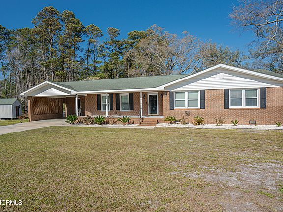 This is a rare opportunity to secure a nice house with lots of elbow room and NO HOA fees. Situated on just under an acre, about 7 minutes from Holden Beach and less than 10 minutes from Shallotte, you will love this location. This traditional ranch style home has been renovated and updated with new flooring throughout, new counter tops, new appliances, and both bathrooms have been redone. The house comes with a washer, dryer and refrigerator and there are two storage sheds on the property. There are 3 large bedrooms for you and your guests. The living room is anchored by a fireplace. There are two parking spots under the built in carport and plenty of extra parking in the driveway. The home is not located in a flood zone. Come check this one out today.