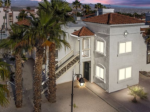 Hurry! Hurry! Opportunity knocks!! Best priced condo in the most desirable area! This 2-bedroom, 2-bath features upgraded stainless steel appliances, fireplace, lots of windows and convenient parking. Keep cool in the summer with the newer AC system and be worry free with the like new water heater. Two primary bedrooms offer private escapes, each boasting en-suite baths and walk-in closets. Step outside to serene patios. Las Palmas' premier amenities include a lavish pool, rejuvenating spa, and an clubhouse. Securely gated, with covered parking. Perfectly positioned between Laughlin Library and Mountain View Park, proximity to shopping, the river, and casinos make this your ideal home, whether for vacation, winter escape, or full-time enjoyment. Elevate your lifestyle at Las Palmas! Remember, Nevada has no state income tax. So come over, save alot and kick back - this one is the place for you!