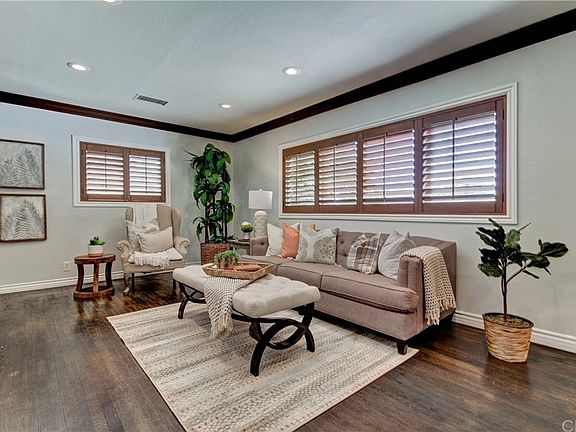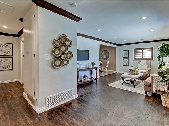 One of the best streets in the neighborhood, quiet, interior location on a spacious tree-lined street with no one behind you. Move in ready with great curb appeal, 3 bedrooms, 2 baths with hand-refinished richly stained hardwood flooring, & custom plantation shutters throughout. Upgraded kitchen with stainless appliances. Keep cool w/ a brand new central HVAC system w/Lennox condenser & furnace, wifi-enabled smart thermostat, all new ducting & insulation, attic exhaust fan, & upgraded 200-amp main service panel; all professionally installed & under warranty. Bring your Tesla, upgraded garage power supply accommodates highest level residential electric vehicle charging capability. Also, room for 4 cars on the driveway & street parking too. Copper plumbing all redone in 2010. New block wall & custom keyed wrought iron gates surround your mature Avocado, Pomegranate, Loquat, & Lemon trees. Pride of ownership is evident from all the long-term owner residents. Walking distance to Franklin Elementary, Jerome Park & Community Center with a pool. $5 Uber ride to the culinary & arts scene in DTSA from eclectic ethnic eats to elevated dining, DTSA is OC's favorite food neighborhood. Enjoy 4th St. Marketplace, Bowers Museum, monthly art walk, Sunday's farmers market, Main Place mall, 2mi to So Coast Plaza, minutes to SoCo & the OC Mix & The Observatory concert hall. Ride your bike to the beach on the Santa Ana River Trail. Central to 5, 405, and 22 freeways, minutes to Amtrak.