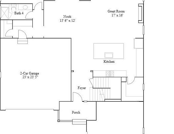a main level bedroom, 3/4 guest bathroom, a large 2-story great room leading into the Chef's kitchen, breakfast nook leading to the